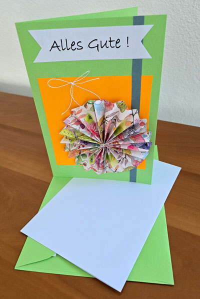 Doppelkarte grün mit Kuvert und Einlageblatt weiss.