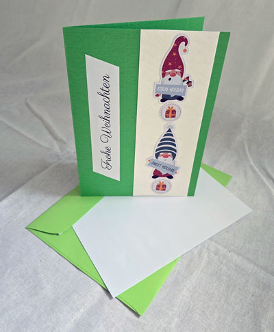 Doppelkarte grün mit Kuvert und Einlageblatt weiss.