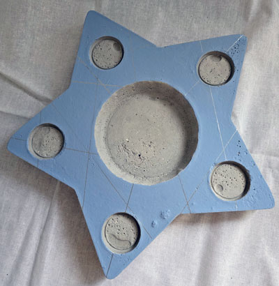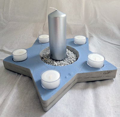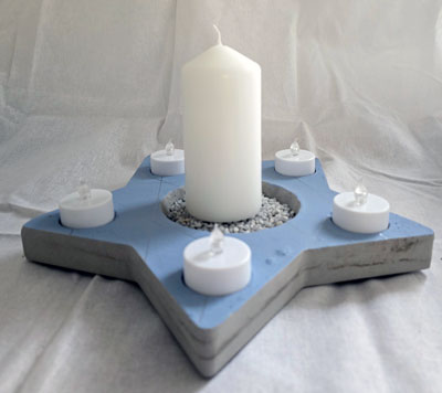 Aussen mit Teelichter oder Led-Teelichter und Innen mit Deko-Sand auffüllen.