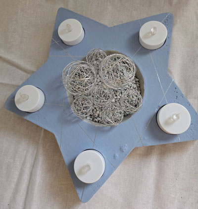 Im Kreis innen kann eine Kerze oder Led-Kerze hinein gestellt werden oder mit Deko-Artikeln